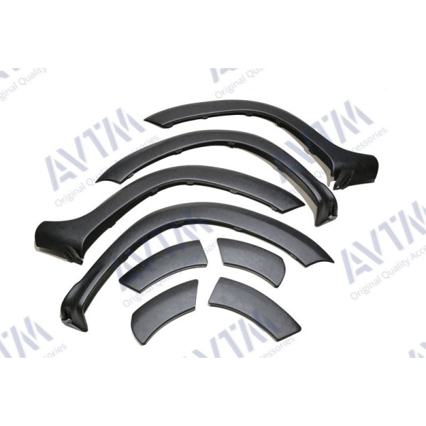 Комплект состоит из 8 накладок из ABS пластика, который защищает колесные арки от внешних повреждений, а также придают автомобилю более красивый вид