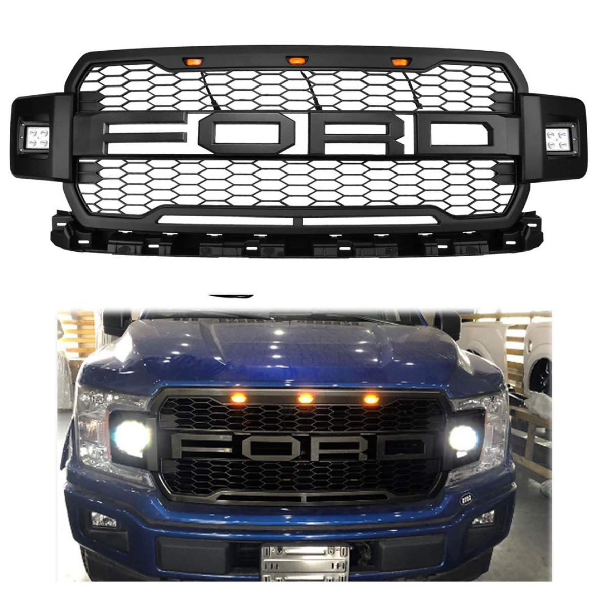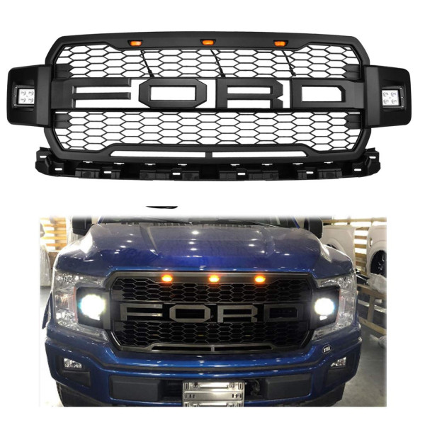 РЕШЕТКА РАДИАТОРА ТЮНИНГ С LED ГАБАРИТНЫМИ ОГНЯМИ ДЛЯ FORD F150 MK13 2017+ В СТИЛЕ FORD RAPTOR .